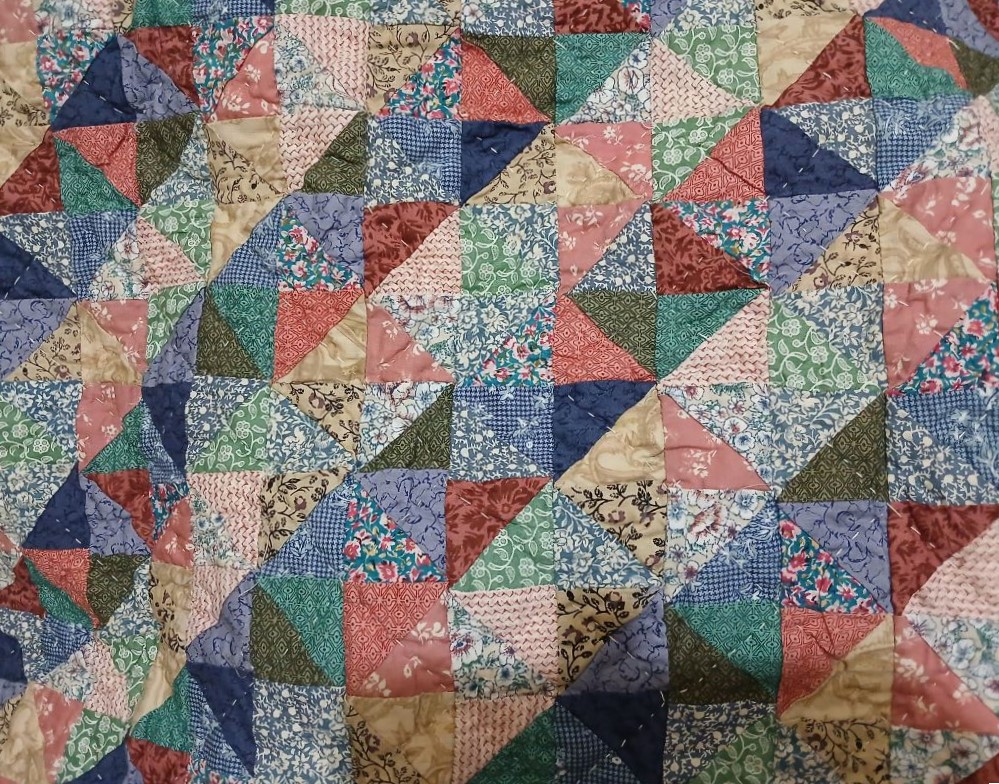 We absolutely adore this quilt. There must be a thousand 2.25”x2.25” squares in this quilt. In fact, the precise total number of squares is 2,304, meticulously hand pieced together.
