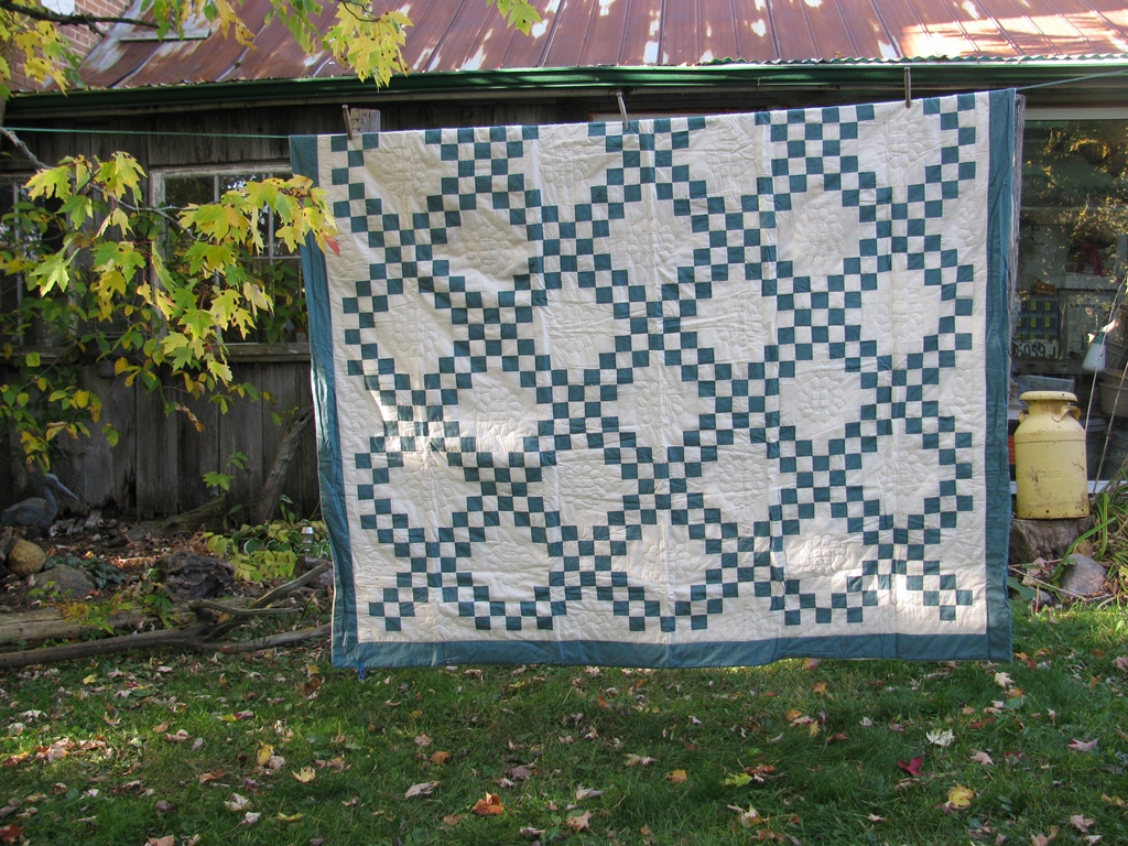Double Irish Chain Handmade Quilt- Antique Green