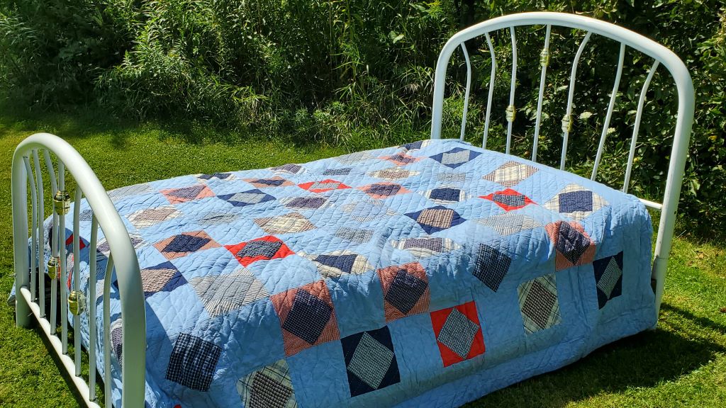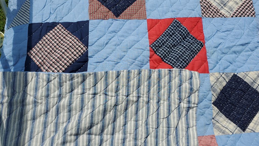 - Hand-pieced Pioneer settler Old Patchwork quilt.