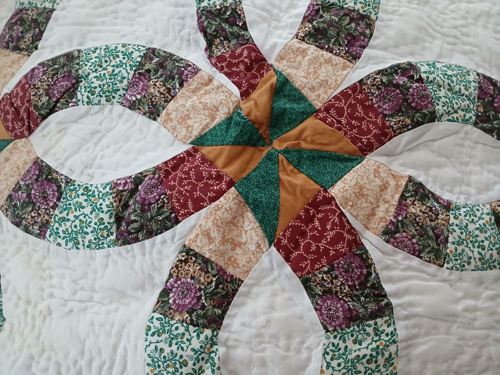 Purple & Green 1980s Double Wedding Ring Hand Quilting
