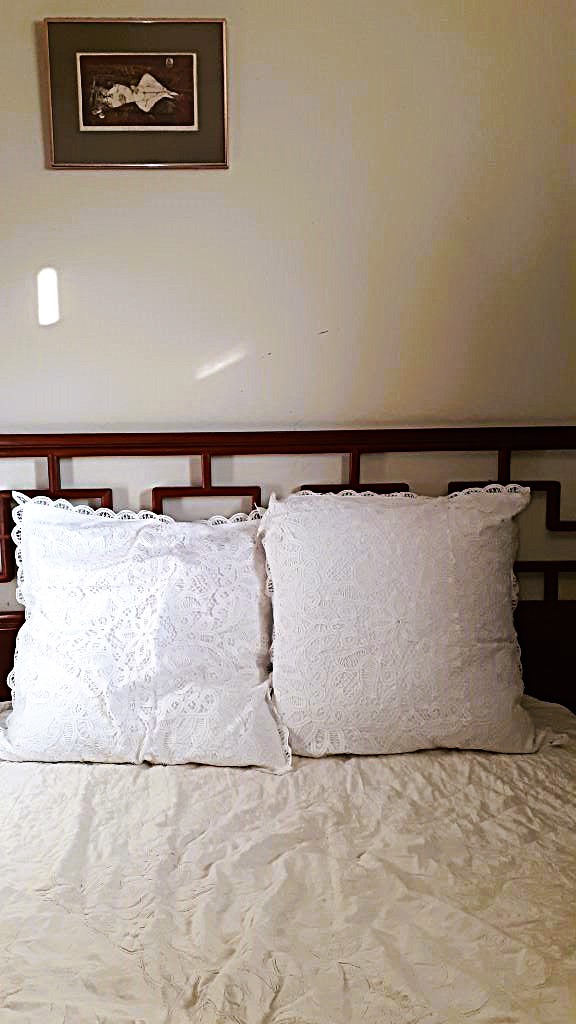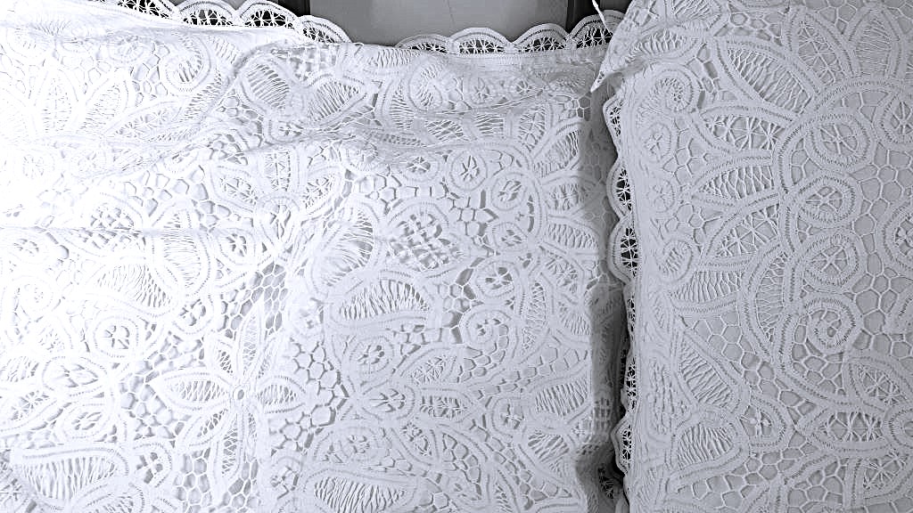 Add timeless European elegance to your bedroom with these handmade Solid Battenburg Lace Euro Shams. Crafted in delicate cotton, they showcase intricate lace motifs, combining classical beauty with soft, durable comfort. Perfect as a statement piece on a bed or layered for a luxurious ensemble.