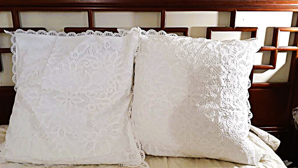 Solid Battenburg Lace Euro Sham Pillow Cover – White Cotton, All Lace, 26″ Square