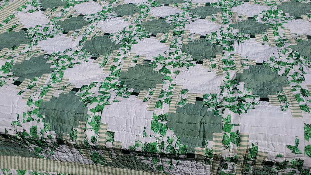Add a touch of classic charm to your home with this Irish Green & White Courthouse Steps Quilt with Prairie Point Border.