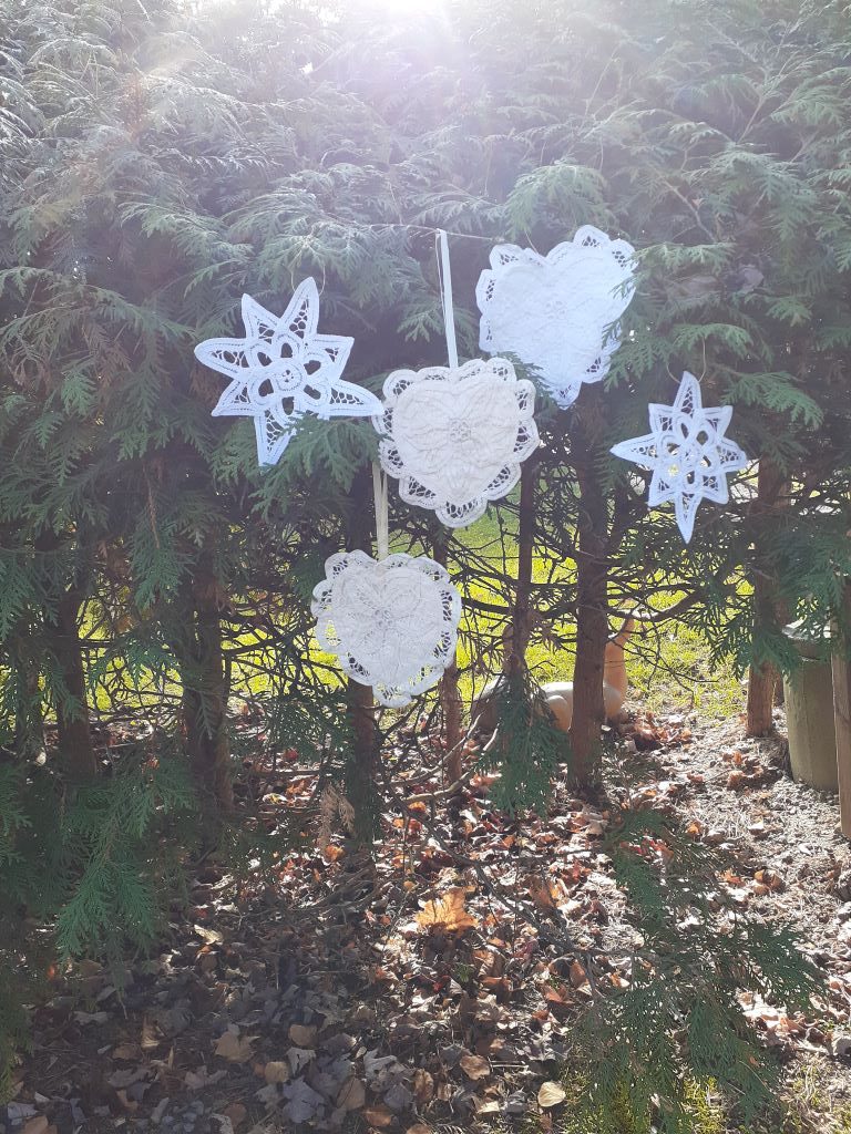 This small 4-inch doily star — light, symmetrical, and quietly radiant — becomes a poetic accent on your Christmas tree or holiday table. The added white ribbon lets it hang gracefully, catching light in its threads like a whisper of snow.
